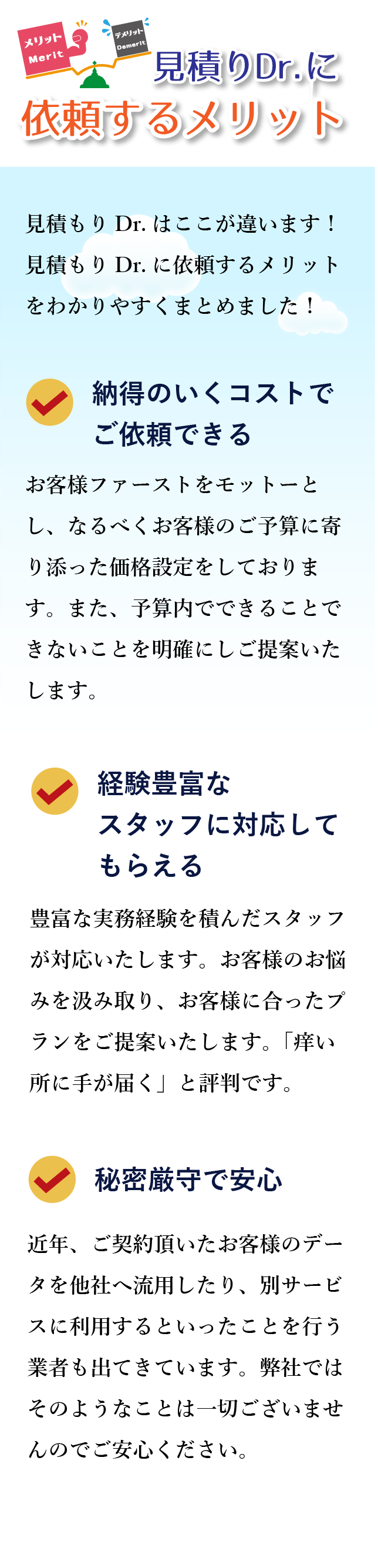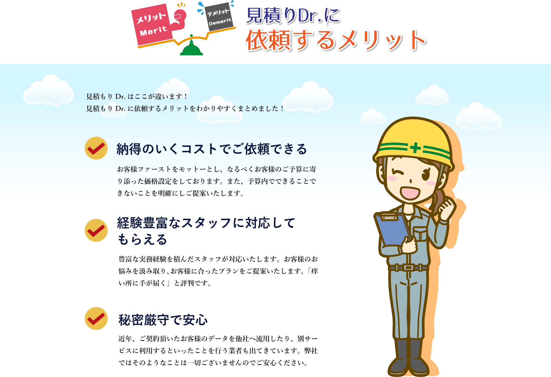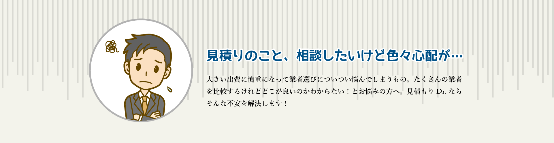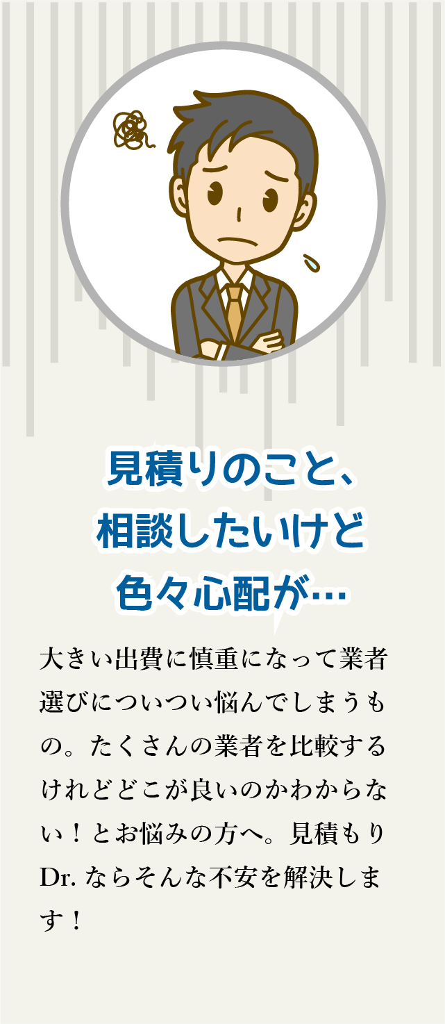 見積りDr.は、見積りでお困りの方のセカンドオピニオンです。